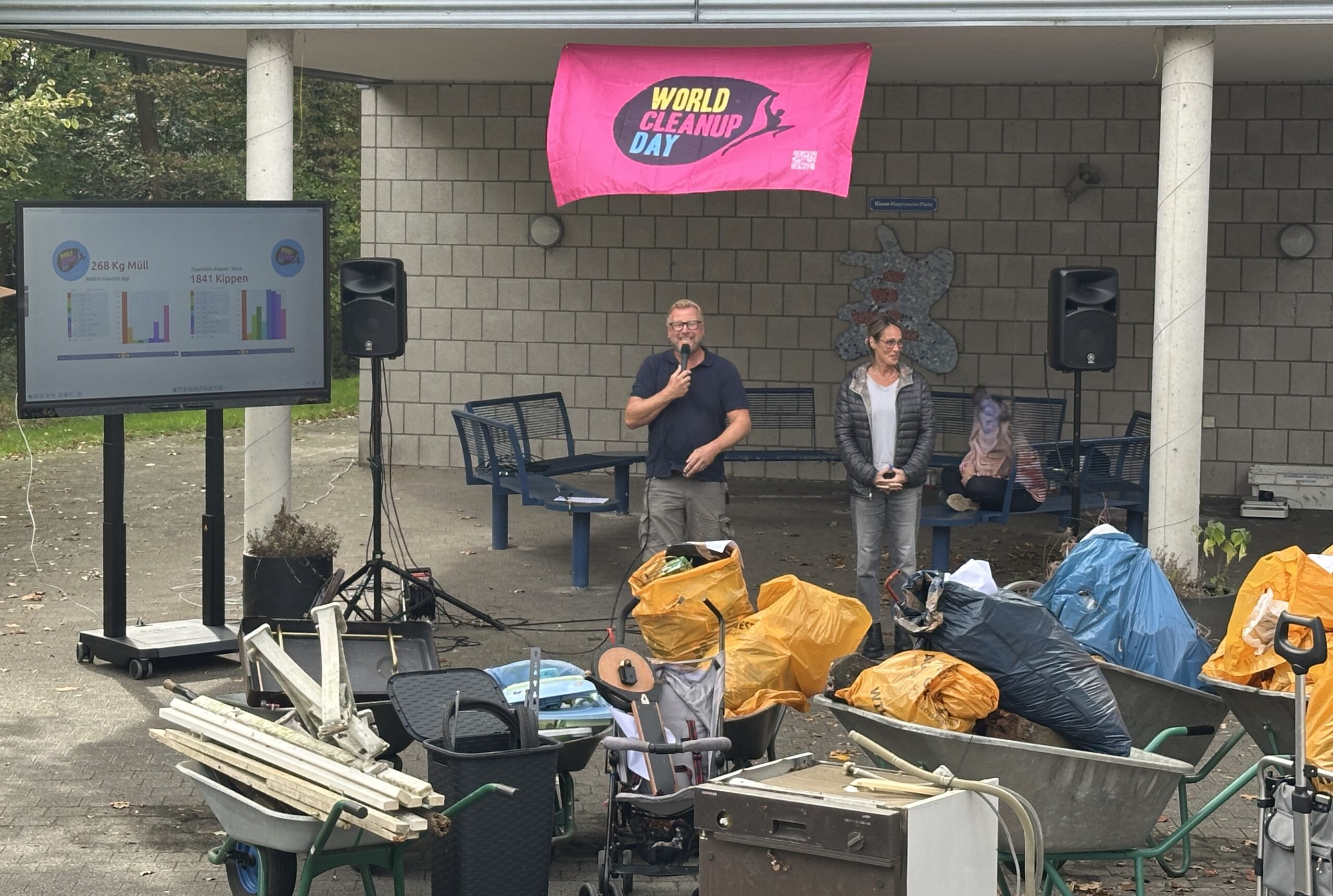 Das ist das stolze Ergebnis unserer Aktion!Insgesamt haben wir 268 kg Müll und über 1.800 Zigarettenkippen in den Straßen rund um die Schule gefunden.