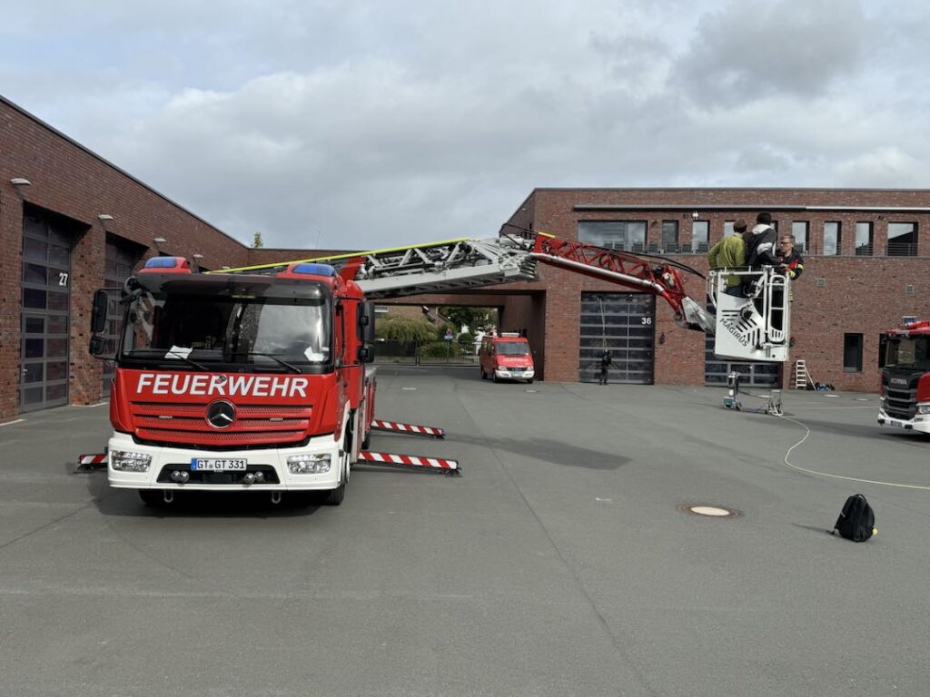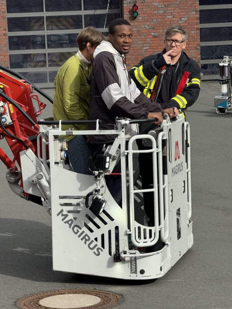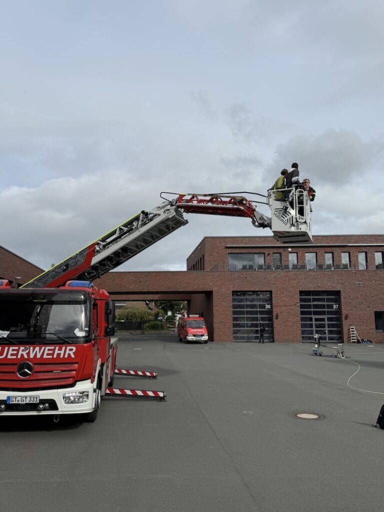 Wir konnten sogar die Schlafräume der Feuerwehr sehen. Besonders aufregend war der Blick aus 30 Metern Höhe mit der Drehleiter – ganz schön wackelig, aber beeindruckend!